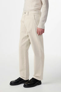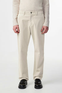 Chinos crafted in organic cotton-blend twill with a touch of stretch for added comfort. Garment-dyed for a soft, peachy handfeel and finished with embroidery details and a classic jeans button closure.