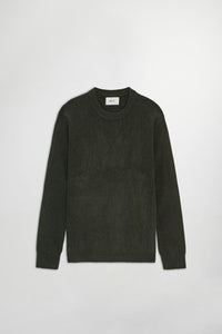 A soft crewneck sweater crafted in a lightweight polyester blend, designed with a neat rib and fashion detailing along the arm and neckline.