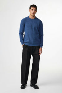 A soft crewneck sweater crafted in a lightweight polyester blend, designed with a neat rib and fashion detailing along the arm and neckline.
