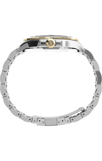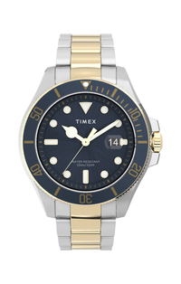 Our Harborside Coast has an elevated look meticulously designed with nautical influence at the helm. Featuring a 43mm silver-tone case, this diver-inspired, polished-yet-rugged watch stands out on the wrist with a stainless-steel bracelet. Complete with 100m of water resistance, a rotating bezel, and a beautiful aventurine-colored dial reminiscent of the sea, the Harborside Coast is ready to set sail.
