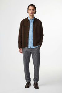 Casual overshirt crafted in soft, lightweight boiled Merino wool, designed with a shirting collar, raw edges, and NN.07 logo buttons.
