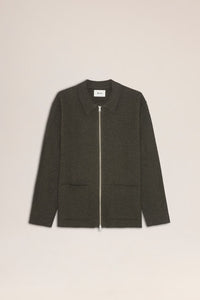 Regular-fit hybrid jacket crafted from 100% boiled Merino wool, offering a fluffy, textured handfeel. Designed with raw-edged boiled wool details and a full zip closure with a signature logo zip.
