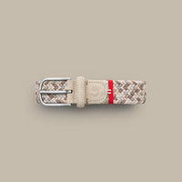 The Santa Monica belt, crafted from suede leather and braided in a mix of beige.
