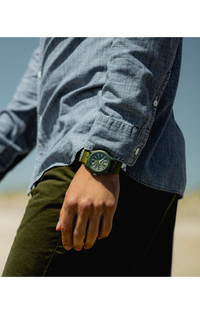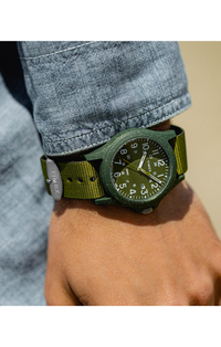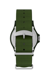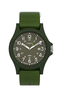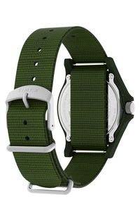 Featuring an olive case and strap crafted from upcycled, ocean-bound plastic, this remarkable wristwatch brings you easy, everyday style while taking less from our planet. Timex's partnership with #TIDE™ means its journey from waste to wrist begins with fishermen collecting plastic from the coastlines; the waste is washed and shredded before making its way to Switzerland via carbon-neutral transportation; and finally, it’s repurposed on-site, resulting in a premium, sustainable material. Navigate uncharted waters ahead with all the trusted functionality you’d expect from a Timex— an INDIGLO® backlight, convenient date window, a durable mineral glass lens, and 30m of water resistance—and join us in working toward a cleaner tomorrow.