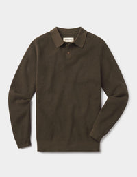The Robles Knit Waffle Stitch Polo is lightweight, true-to-size, and made from 100% Cotton Robles yarn—soft with a subtle stretch and classic cotton feel. It features an all-over waffle-inspired novelty stitch, and is finished with contrast rib details at the collar, button placket, sleeve cuffs, and bottom band. Inset sleeves and marled buttons round out this elevated take on a casual essential.