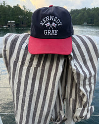 Heritage sport and nautical tradition. The Fulton Cap is cut from navy ripstop with a washed red twill bill and finished with a green underbill — a detail borrowed from retro baseball caps. An adjustable nylon strap with a touch of stretch ensures a comfortable and secure fit.