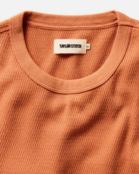 Durable organic cotton is loomed to a hardy 10-oz and finished in a vintage-inspired waffle texture for better insulation and a soft, textured hand. They’ve rounded out the package with ribbed accents at the collar and cuffs for a tidy fit.